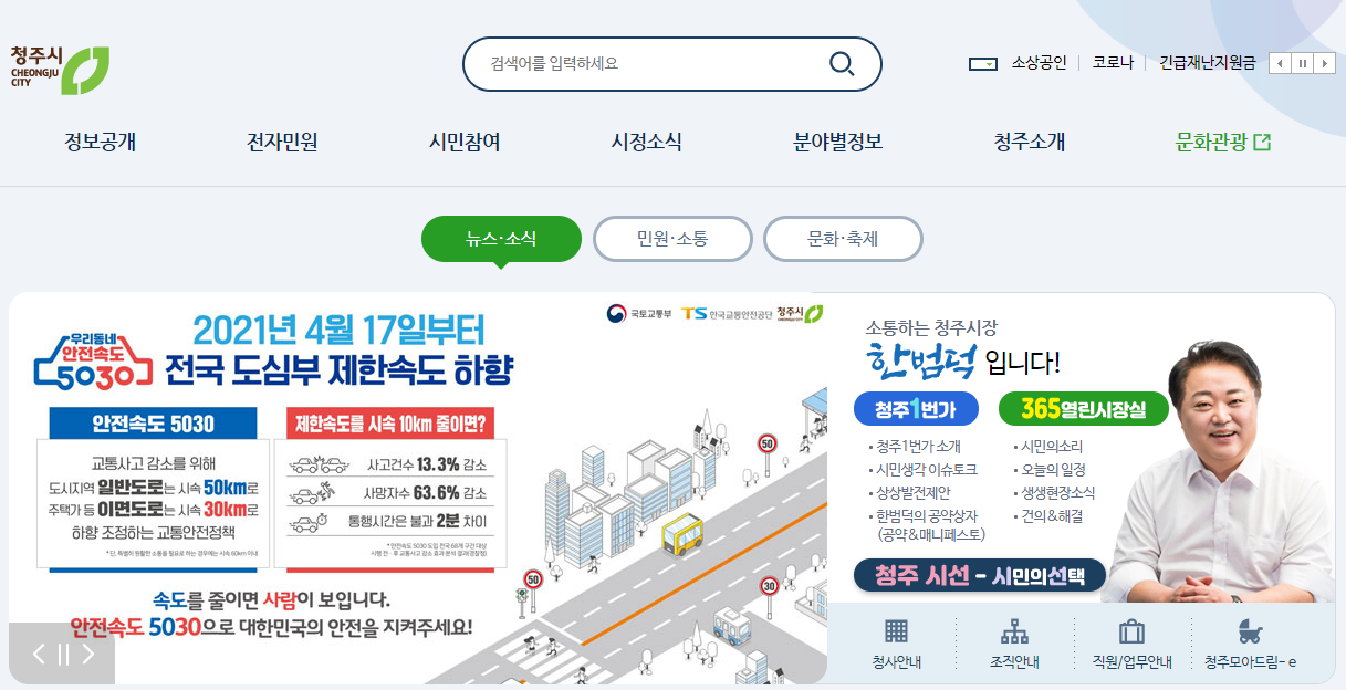 오늘은 청주시청 홈페이지에 대해서 소개를 해 볼까 합니다. 국가기관이나 지자체의 홈페이지에는 평소엔 잘 모르지만 알아두면 아주 유용한 정보들이 많이 있습니다. 다 같이 천천히 살펴 볼게요.