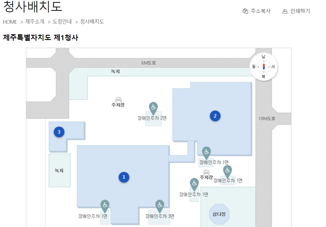 그리고 제주도청을 방문하기 전에 청사배치도는 필수로 확인을 하셔야 합니다. 청사가 하나가 아니기 때문입니다.