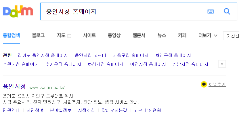 먼저 용인시청 홈페이지로 접속을 해 보겠습니다. 다들 아시다 시피 검색을 하시면 간편하게 접속이 가능하며, 아래의 링크로도 접속 하실 수가 있습니다.