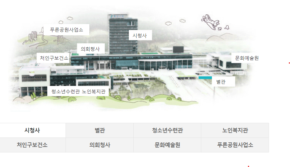 조직도 만큼이나 중요한것잉 바로 청사 안내입니다. 용인시청은 새로운 청사를 지은지 얼마 되지 않았기 때문에 용인시청을 방문하시는 분들은 사전에 청사안내를 확인해 두시면 좋습니다.